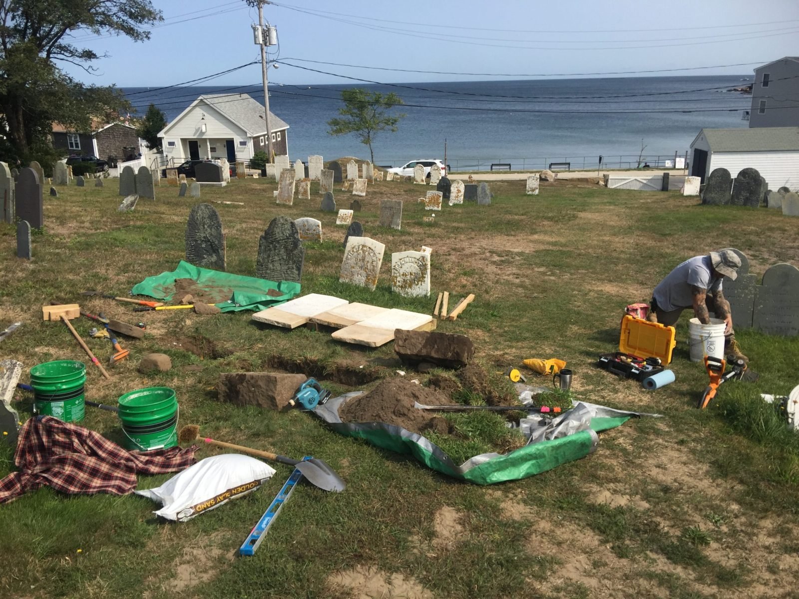 The Old First Parish Burying Ground in Rockport is undergoing professional restoration.